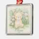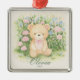 Adorable vintage style watercolor illustration of a teddy bear in a flower garden.