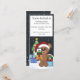 An adorable teddy bear in a Santa has, holding presents AND a penguin. Standing in the snow, near a Christmas tree with presents. Falling snow in the night sky and a North Pole sign. Teddy Bear by Whispy's D'zines