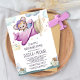 Teddy Bear Airplane/Baby Shower by Mail Invitation - A baby shower by mail invitation for the times where you can't be with the people you love. Because things certainly do not always go as planned. Absolutely ideal for a baby shower by mail. It features an extremely cute teddy bear pilot in an adventure in the sky. Presented in stunning purple water colour. Take your by mail baby shower celebration to dizzying heights with this fresh and breezy invitation.