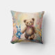 Teddy bear and Bunny In a Pastel Garden Throw Pillow