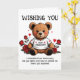 This is an AI generated design. I wanted to have a teddy bear with the text Happy Anniversary on its t-shirt. And that is how the design came out. I was trying to be funny with the text I wrote on the card.