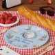 This whimsical baby shower plate features astronaut teddy bears, space crafts, stars, planets and a telescope. It says "We're Over the Moon" in a curve around the moon and then below is a template for you to put just the Mom to Be's name or Mom and Dad's to be name with "Baby Shower". These make the cutest plates for a baby shower luncheon or snacks and treats. Be sure to check out the entire collection to have a completely coordinated baby shower!