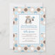 This cute boy baby shower invitation features a sweet teddy bear holding balloons with a polka dot background in blue, beige and brown. The backside design is blue and white stripes which match the front. All text is editable so you can personalize this design for your own unique needs.
