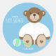 Teddy Bear Baby Shower Sticker, blue background Classic Round Sticker