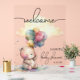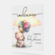 A cute, cuddly teddy bear, a bunch of balloons, butterflies, fluffy clouds and your details along with the word "Welcome" at the top are featured on this clear acrylic sign. MATCHING items in our collection.