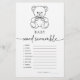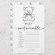 Sophisticated simple and elegant "Baby word scramble" game designed for a teddy bear themed baby boy shower, adorned with a charming hand drawn teddy bear with the cute bow. Engage your guests with this delightful game, perfect for adding fun and excitement to your celebration while creating cherished memories.
