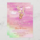 Invite friends and loved ones to celebrate your baby shower with this cute teddy bear holding pink balloons while floating through a starry sky.