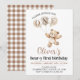Celebrate your little one's milestone with our Beary First Birthday Invitation! This adorable invite features a sweet teddy bear floating with pastel balloons, creating a whimsical and charming theme for your baby’s special day. With soft, cozy colours and playful details, it's perfect for a cuddly and memorable first birthday celebration. Personalize it with your child's name and party details to invite family and friends to a bear-y sweet celebration filled with love, laughter, and teddy bear hugs!