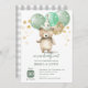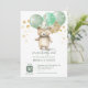 Teddy Bear Balloons Green Gold Baby Shower Invitation