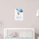 Watercolor Teddy Bear Blue and Silver Balloons Welcome Baby Shower Sign.