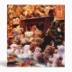 Plenty of cute teddy bears sitting quitely in front of the Christmas tree.