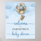 Teddy bear blue brown balloons welcome sign for baby shower,
