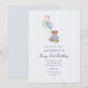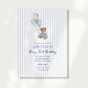 Teddy Bear Blue Stripes First Birthday Invitation