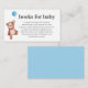 A boy baby shower "we can bearly wait" books for baby insert featuring a teddy bear and blue balloon. Matching items available in the Teddy Bear Baby Shower Theme collection.