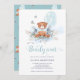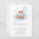 Step into a world of adorable charm with our "Teddy Bear Boy Baby Shower Invitation," a design that captures the essence of childhood sweetness and the joy of welcoming a new life. At the heart of this design, a winsome watercolor teddy bear takes centre stage, clutching three blue balloons behind his back with an air of playful secrecy. It's an endearing scene that embodies the joy and wonder of welcoming a precious baby boy into the world. Beneath the bear's paws, a bed of delicate blue flowers unfolds like a tranquil meadow. Each bloom is a testament to the beauty of nature and the gentle, nurturing love that surrounds the impending arrival of a precious baby boy. The colour palette is a gentle blend of soft blues and earthy browns, creating an atmosphere of serenity and tranquillity. These hues set the stage for a celebration filled with love and the promise of new beginnings. As you behold the "Teddy Bear Boy Baby Shower Invitation," you're transported to a world where the ordinary is transformed into the extraordinary, and every moment is a reminder of the blessings of family. It promises a gathering filled with laughter, heartfelt conversations, and the joyful anticipation of a precious little one. This invitation that captures the essence of a cherished moment, where the love of family and the wonder of childhood meet in a celebration that will be treasured for a lifetime. Most lettering is editable - click the "Customize Further" button to edit. Matching items available.