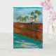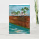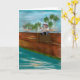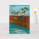 Original digital painting by Ines Miller; whimsical young teddy bear fishing on a wooden port. This brown teddy bear card may be personalized with your own text or special message.