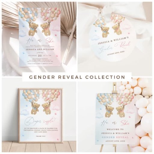 Gender Reveal Girl Classic Round Sticker with Blue Teddy Bear Clipart