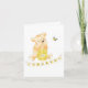 Un mignon ours en peluche avec un tonneau de miel regardant une abeille au miel et un "Merci" sur une bannière jaune en dessous. Parfait pour après une soirée révélatrice de genre. À l'intérieur de la carte, il y a quelques mots de remerciement basiques, de l'espace pour écrire, des fleurs vertes et jaunes. Il est également doté d'une ligne de signature. Pot de miel sur le dos.