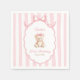 Teddy Bear Girls Pink Bow Stripes 1st Birthday Napkin