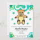 Teddy Bear Green Flowers Floral Baby Shower Invitation