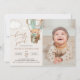 Invite friends and family in style and set the tone for your special day with this charming birthday invitation. Design features teddy bear in green hot air balloon on beige background.
