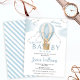 Cute blue teddy bear on hot air balloon baby boy shower invitation. Adventure awaits theme baby shower invite.