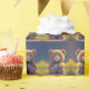 This cute Wrapping Paper features a cuddly teddy bear in the middle of a meadow of flowers against the evening sky. Brown bear, yellow flowers, blue sky. Wonderful gift wrapping for baby shower, kids birthday and more! My idea, generated with AI.