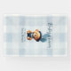 Create a unique baby shower banner featuring blue colours, and a casual chic teddy bear with gingham and balloons. Bear Jean Baby design on the front along with the event name and guest of honour that you can edit for your needs. Use the template to create a special, personalized party banner for your baby shower. Teddy Bear Jean Baby Shower Blue Party Banner.
