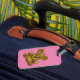 Pleasantly surprised at the quality of the luggage tag. It was exactly as shown and my daughter will be pleased. The address label on the back of the luggage tag was neat and clear.