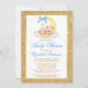 Teddy Bear Moon Gold Glitter Baby Shower Blue Invitation