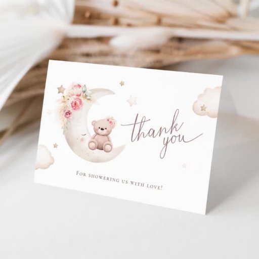 Teddy Bear Over The Moon Neutral Place Card. Matching items avaiable.