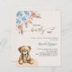 For a modern boho style baby shower. A beige background. Decorated with a dusty blue roses, pampas grass and a teddy bear. Personalize and add a name and party details.