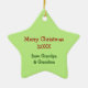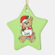 This cute personalized kids' Holiday ornament features a cuddly teddy bear dressed in Christmas red and white. The bear holds a white muffler decorated with holly, and personalized with your child's own name. The image is placed on a light green background. The back of the ornament is matching green, with enough room for your customization. Easy to change it to say anything you'd like!