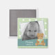 Magnet with cute teddybear carrying a heart. Customize with your child's photo, name and date of birth! Anis and green.