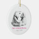 Ceramic Ornament with Teddy Bears stands ready to be personalized with your child's name and birthdate, plus download your photo on to the back.