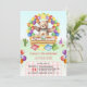 A teddy bear themed kid's Birthday invitation template. The watercolor design features a teddy bear sitting at a picnic table surrounded by vibrant multicolor rainbow balloons, cakes and sweets. Your event details are presented on a red picnic blanket. Personalize the digital or printed invitation by editing with your event details.