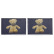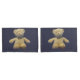 A cute fluffy brown stuffed teddy bear on blue pillow cases. Great to go with the other teddy bear items for a child's room.