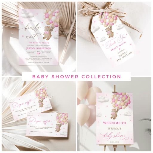 Teddy Bear with Pink Balloons Baby ShowerDesigned by A S