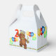 A fun 2nd birthday gable party favour box with your child's name featuring a prince of a teddy bear all decked out in a colourful jewelled crown with a bunch of colourful balloon with letters on them that spell out PARTY. Personalizing with your child's name makes it extra special. We specialize in custom-made designs, so contact us if you would like a unique made-to-order layout using this basic royal teddy bear design for your kid's memorable birthday celebration.