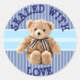Baby Shower, Birthday or Birth Announcement Teddy Bear "sealed with love" Sticker blue and tan.