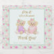 Send your baby shower guests home with this adorable and girly chic custom mini sparkling wine bottle label that reads "Pop it when she pops!" The label is customizable, to edit the text click "personalize this template". This custom sparkling wine label features a mint green tea party background and a hand drawn illustration of two teddy bears dressed in fancy dresses and sipping tea from cute pink tea cups. This makes for a fun and unique baby shower party favour and take home gift!
