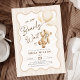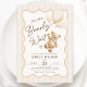 We can bearly wait gender neutral baby shower invitation. Teddy bear themed design in beige and cream neutral colours. Features trendy wavy frame, watercolor cute teddy bear, balloons and script font. Perfect for an elegant baby shower celebration. Personalize with your own details. Printed Zazzle invitations or instant download digital printable template.