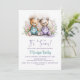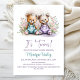 Celebrate double the joy with a baby shower invitation as special as the little ones on the way. This charming design features two adorable teddy bears wearing blue overalls. A delightful way to gather your friends and loved ones, it sets the tone for a heartwarming celebration filled with love, laughter, and twice the cuddles.The customizable text allows you to effortlessly add your name, date and time of the celebration, and the RSVP information. A variety of paper types and corner styles are available for your unique invitations, along with the option to download if you prefer a digital format.