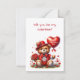 Cute teddy bear in a derby hat and a bow tie, with a Happy Valentine's Day balloon and lots of roses and other flowers. Perfect for classroom card exchange. Greeting on front can be changed. AI assisted graphic purchased with commercial use. Artwork: DreamCafeArt