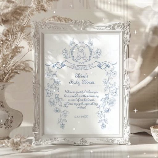 Teddy bear Vintage frame Toile Baby shower Invitation
