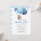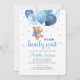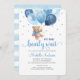 Watercolor Teddy Bear Blue and Silver Balloons We Can Bearly Wait Baby Shower Invitation.