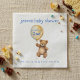 Celebrate your special day with this sweet baby shower napkin featuring a watercolor illustration of a cuddly teddy bear holding a gold balloon. The balloon is inscribed with the shower date, while playful blue script announces “(name) baby shower” at the top. The bottom includes a heartfelt message: “We are so happy you are here.” The gentle cream background, soft blue accents, and charming bear motif create a warm, welcoming atmosphere—ideal for baby showers, brunches, or welcoming celebrations. The chic and minimal design makes this napkin a perfect fit for both classic and modern party themes, adding a joyful touch to your table setting.