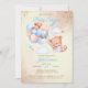 Teddy bear with brown and blue balloons and clouds baby shower invitations.