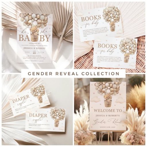 Teddy Bear with Neutral Balloons Gender Reveal Acrylic Sign