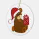 Teddy Bear with Santa Hat and Red Present Ceramic Ornament